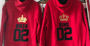 (Exemple de dues dessuadores personalitzades en vinil negre i daurat) - No es pot planxar vinil damunt de les costures de la peca.