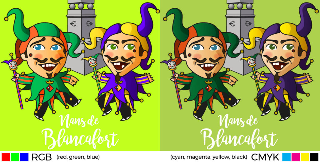 - Gestió correcte del perfil de color. Els formats .png, per desgràcia, només accepten perfils de color RGB, és a dir basats en els colors bàsics de la llum (Red, Green, Blue). Per a imprimir, no obstant es fa servir la quadricromia estàndard CMYK (cyan, magenta, yellow, black), i això complica la gestió del color. És normal trobar-se que les imatges canvien molt de la pantalla a l’estampació. Per corregir això, recomanem fer el disseny en CMYK, i abans d’enviar-lo al proveïdor, convertir-lo a RGB i guardar-lo en un arxiu .png.