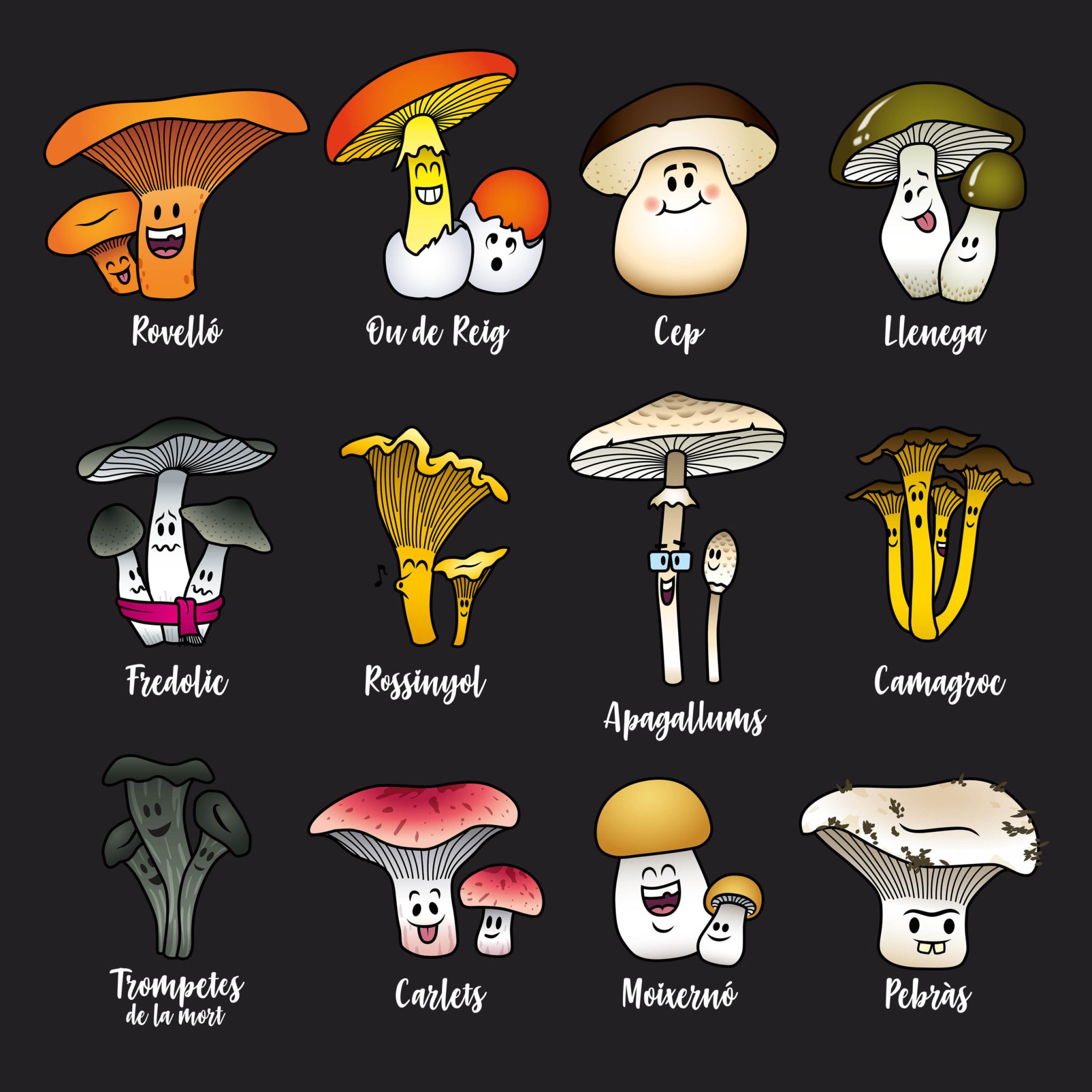 Per als grans boletaires de la casa, una simpàtica #samarreta amb els bolets comestibles més populars de Catalunya.