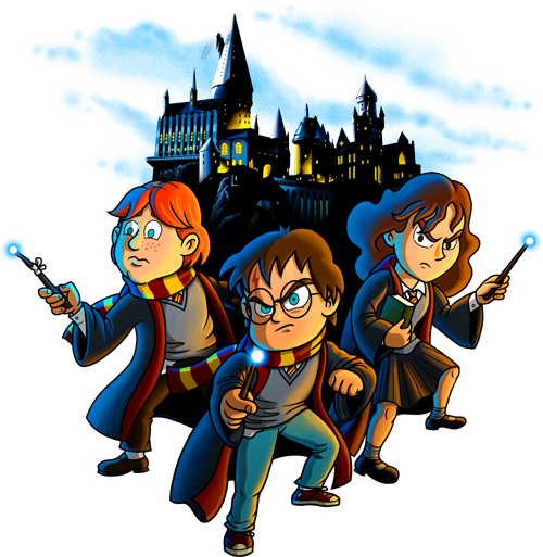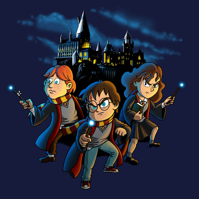 Una bonica samarreta infantil, que ens transporta al meravellós món de la màgia de Hogwarts amb el Harry, el Ron i l’Hermione.