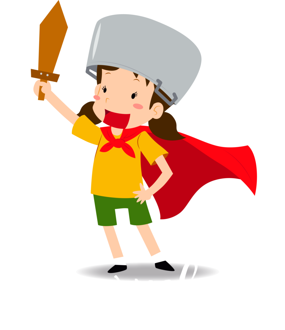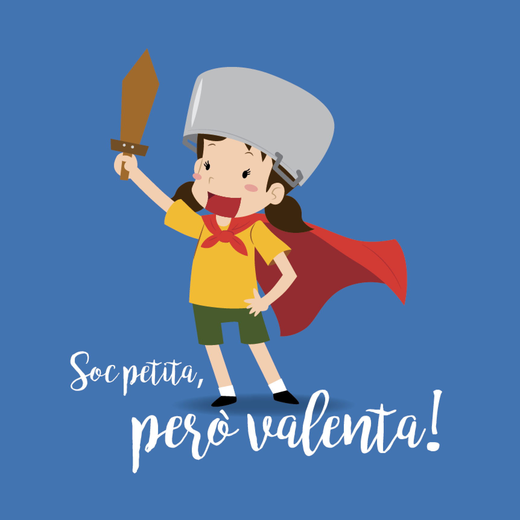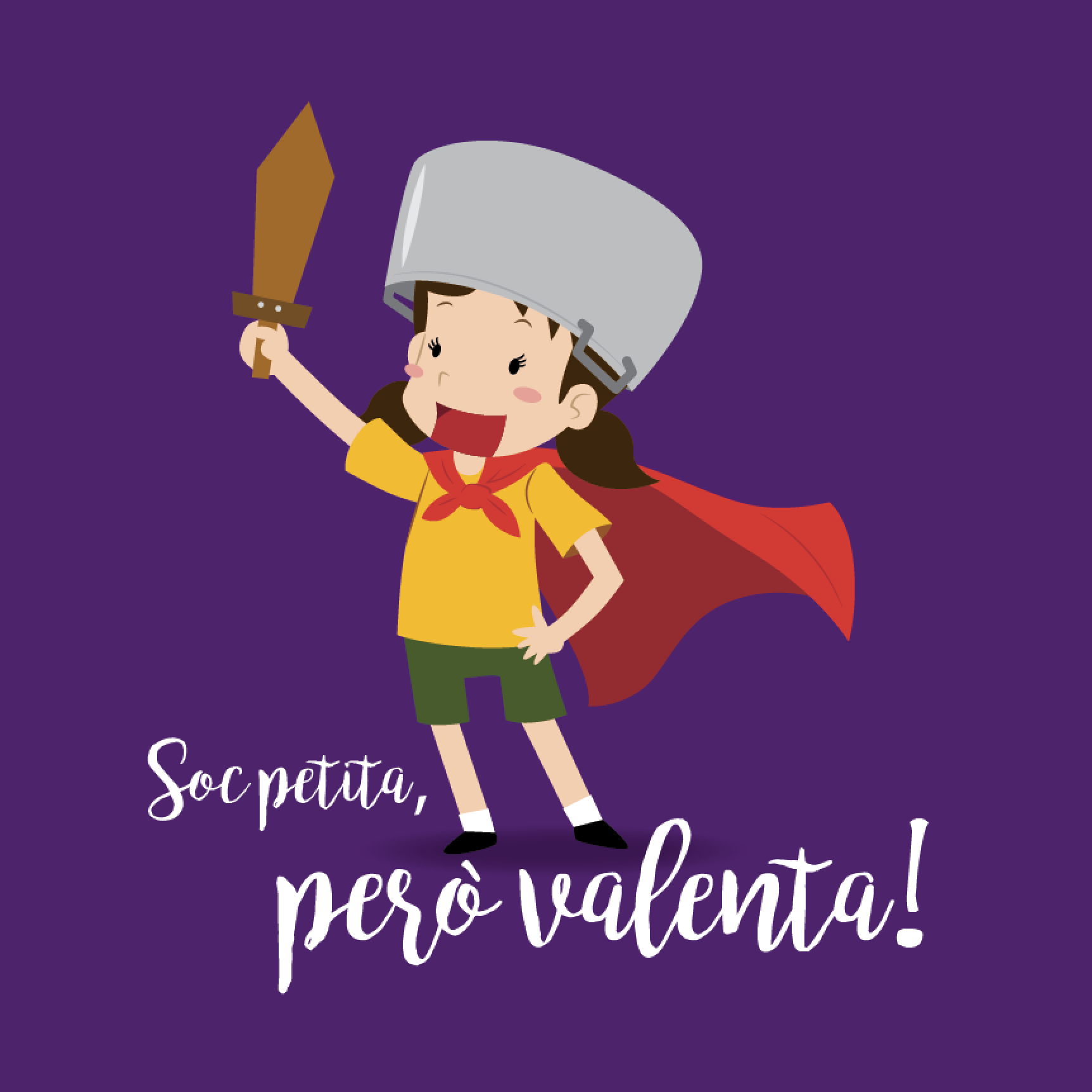 Divertida samarreta infantil amb un dibuix d’una nena amb amb espasa i capa, i una cassola al cap.