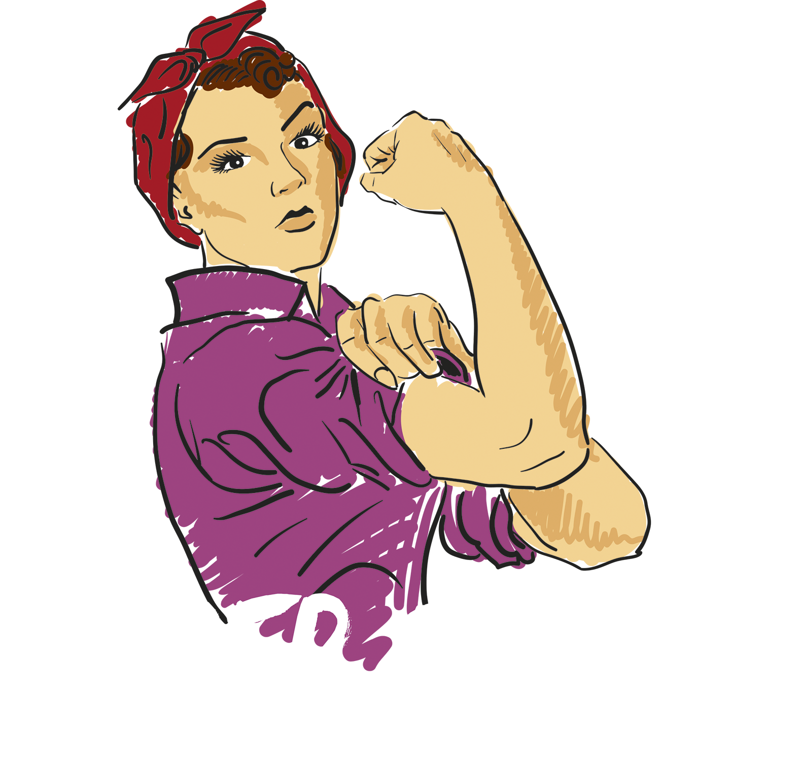 Una samarreta amb una versió del mític dibuix “We can do It” de J. Howard Miller, adaptat amb el lema “Poder Femení”.